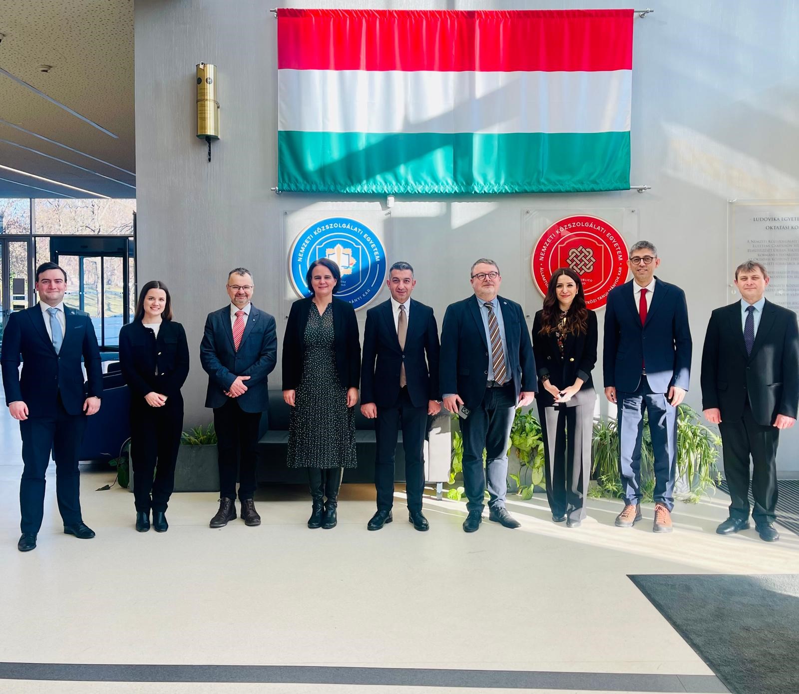 27–28 Ocak 2026 tarihlerinde yapılan ziyaret kapsamında, Bakanlığımız Personel Genel Müdürlüğü Daire Başkanları Orhan ŞIK ve Tuğba Hazal SAYALGI ile Şube Müdürü İbrahim YAMAN’dan oluşan heyet, Macaristan’da gümrük personelinin yetiştirilmesinden sorumlu Eğitim, Sağlık ve Kültür Enstitüsü ile Kamu Hizmeti Üniversitesinde incelemelerde bulunulmuştur.